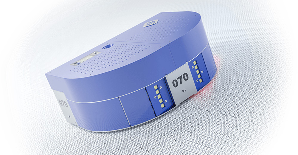 Die STOROJET RO70 Lagerroboter befördern innerhalb des geschlossenen Regalsystems Warenträger zu Kommissionierstationen, sind nicht schienengebunden und werden vom Zentralsystem per Funk orchestriert. Die kleinen Kommissionierroboter haben die Größe eines Mähroboters für den Hausgebrauch, verfügen jedoch über weit mehr Leistung.